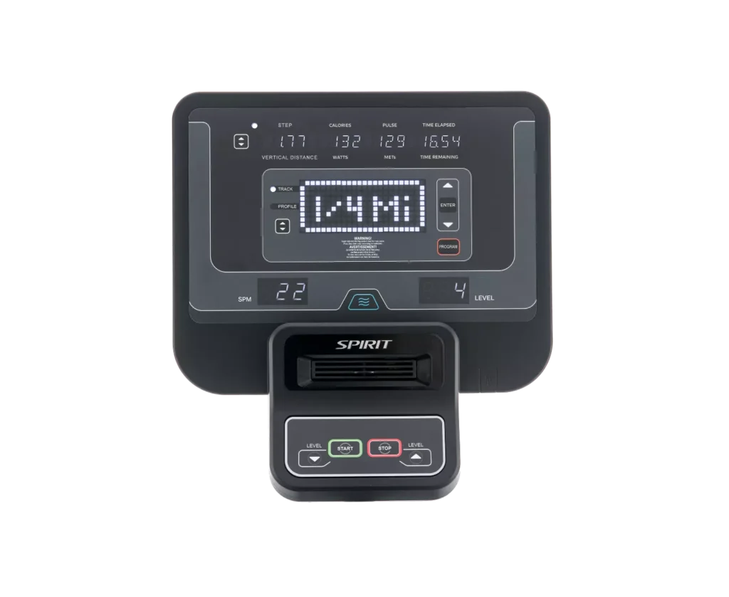 - Feedback: Steps, Distance, Calories, Watts, Pulse, METs, Time Elapsed, Time Remaining, Program Profile, SPM, Level